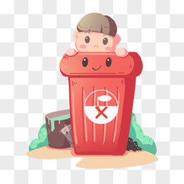手绘卡通男孩女孩丢垃圾进垃圾桶插画免抠元素