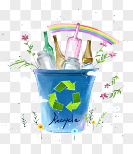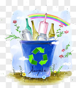 一组卡通手绘保护环境垃圾分类场景系列三免抠元素
