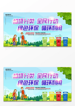 时尚蓝绿色渐变垃圾分类全民行动环保展板