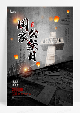 黄白严肃南京大屠杀国家公祭日展示海报设计
