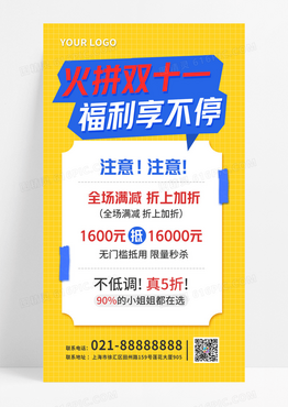 黄蓝撞色时尚大气火拼双十一活动促销海报