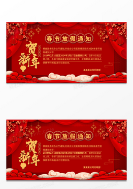 过年放假通知红黄绿色中国风春节放假通知宣传展板