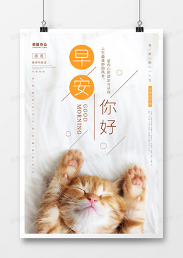 创意萌宠早安你好海报