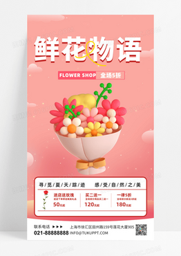 红色鲜花物语鲜花粉色渐变海报平面海报设计手机海报