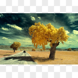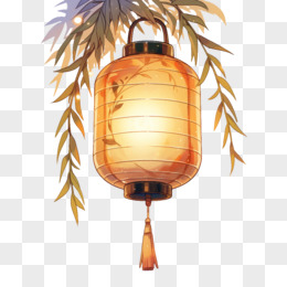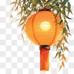 卡通风中元树枝下的黄色长发形灯笼免抠元素