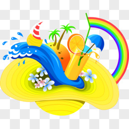 黄色帽子里装有海浪椰树果汁的海报素材设计