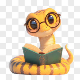 3D卡通风戴眼镜看书的黄色蛇免抠元素