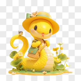 3D新年戴草帽背包的黄色蛇蛇与免抠元素