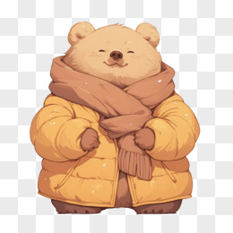 卡通冬季一个穿着黄色羽绒服的棕色熊免抠元素