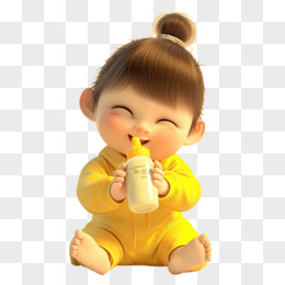 3D卡通抱着奶瓶穿黄色衣服的婴儿免抠元素