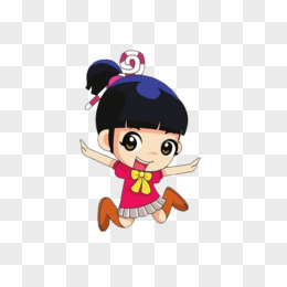 卡通风格一个带着红色花朵发卡穿着黄色波点裙子的三岁短发小女孩和一朵红色的花闻花香免抠元素