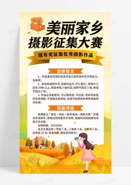 黄色简约创意美丽家乡摄影征集大赛插画风景拍照手机海报设计