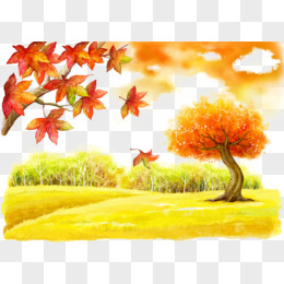 元素叶子手绘树叶植物枫叶简约装饰黄色水彩绿植