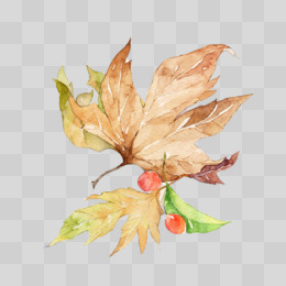 元素叶子小清新手绘树叶植物枫叶简约装饰黄色水彩