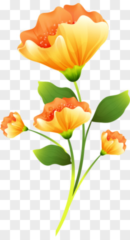 黄色花朵绿色叶子png素材