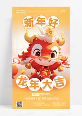 一组2024龙年手绘黄色龙角样式套图合集元素四