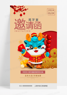 黄色中国风尾牙宴邀请函尾牙手机海报