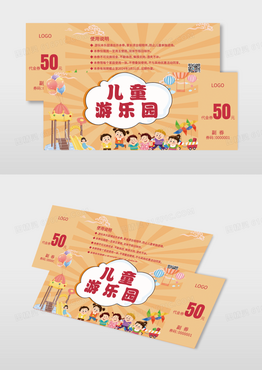 淡黄色梦幻卡通儿童游乐园儿童乐园代金券儿童乐园卡券代金券模版