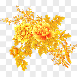黄色花手绘花卉图案牡丹花开