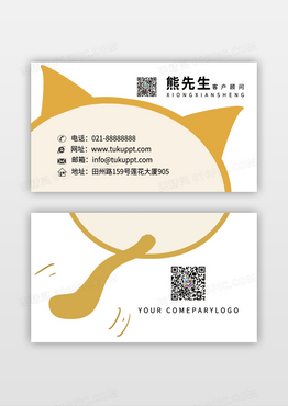 黄色猫咪宠物名片模板