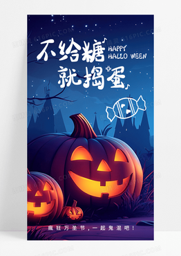 蓝黄色涂鸦风万圣节南瓜海报制作模板
