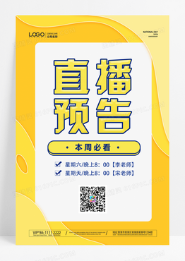 黄色直播预告抖音手机在线直播线上课程宣传海报