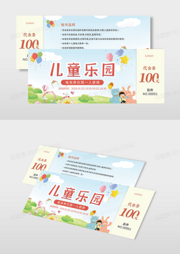 黄色卡通风儿童乐园代金券儿童游乐场门票卡券儿童乐园卡券代金券模版