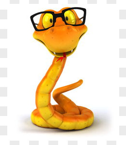 3D卡通风戴眼镜看书的黄色蛇免抠元素