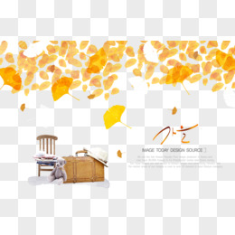 卡通风秋天一筐梨和黄色银杏叶免抠元素