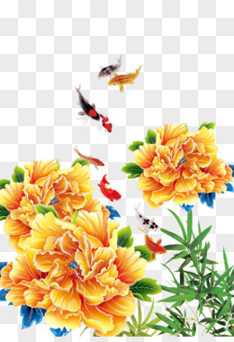 黄色喜庆中国风锦鲤免扣素材
