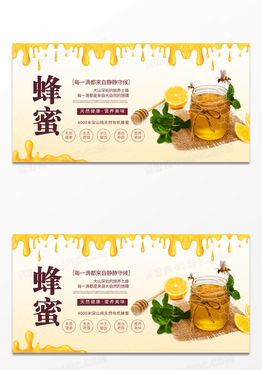 黄色质感天然有机蜂蜜美食宣传展板舌尖