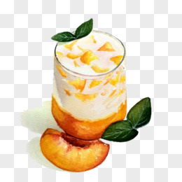 黄桃酸奶手绘画素材图片