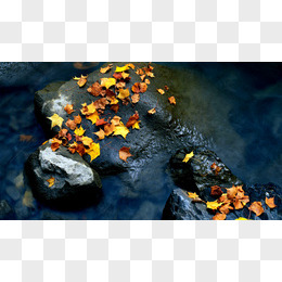 晚秋黄叶树木岩石