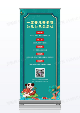 青色水彩花鸟背景商铺公寓购买租赁宣传房地产展架易拉宝