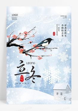 简约立冬花鸟梅花创意海报