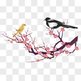美丽梅花和鸟免抠元素