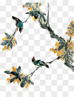 水墨花鸟免抠手绘元素