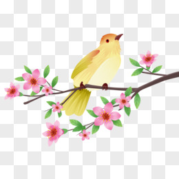 手绘树枝花鸟插画素材