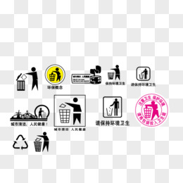 一组扁平卡通保护环境手举牌装饰之举手之劳垃圾分类素材
