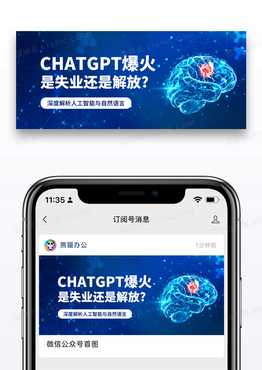 蓝色简约chatgpt爆火是失业还是解放话题讨论公众号封面配图图片