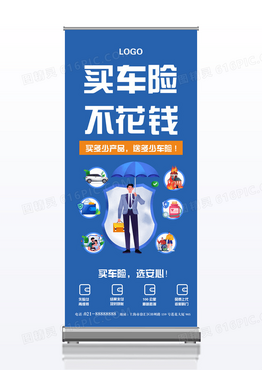 蓝色车险展架车险易拉宝买车险不花钱卡通保险x展架