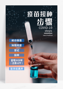 浅蓝色卡通矢量画疫苗接种步骤点引导海报设计