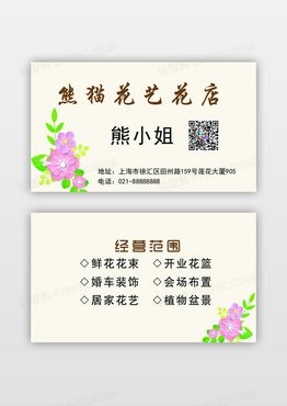 花店名片经营范围鲜花花束开业花篮婚车装饰名片设计
