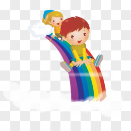 卡通小孩彩虹滑梯