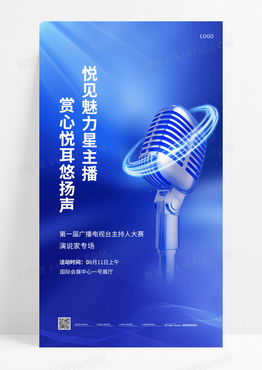蓝色创意金话筒麦克风演讲大赛手机宣传海报