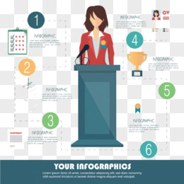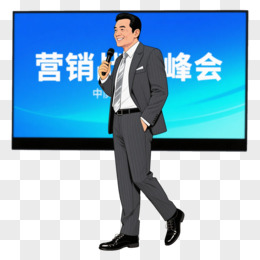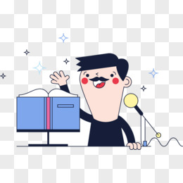 卡通男讲师拿着话筒站着大屏幕前免抠元素