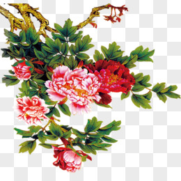 垂丝海棠蜜蜂手绘花朵多彩手捧花免抠元素