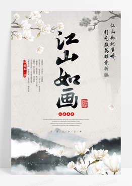 中国风水墨山水江山如画宣传海报