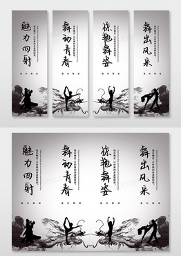 黑色水墨渐变花纹山水舞蹈套图舞蹈挂画