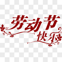 红色劳动节快乐字体花纹